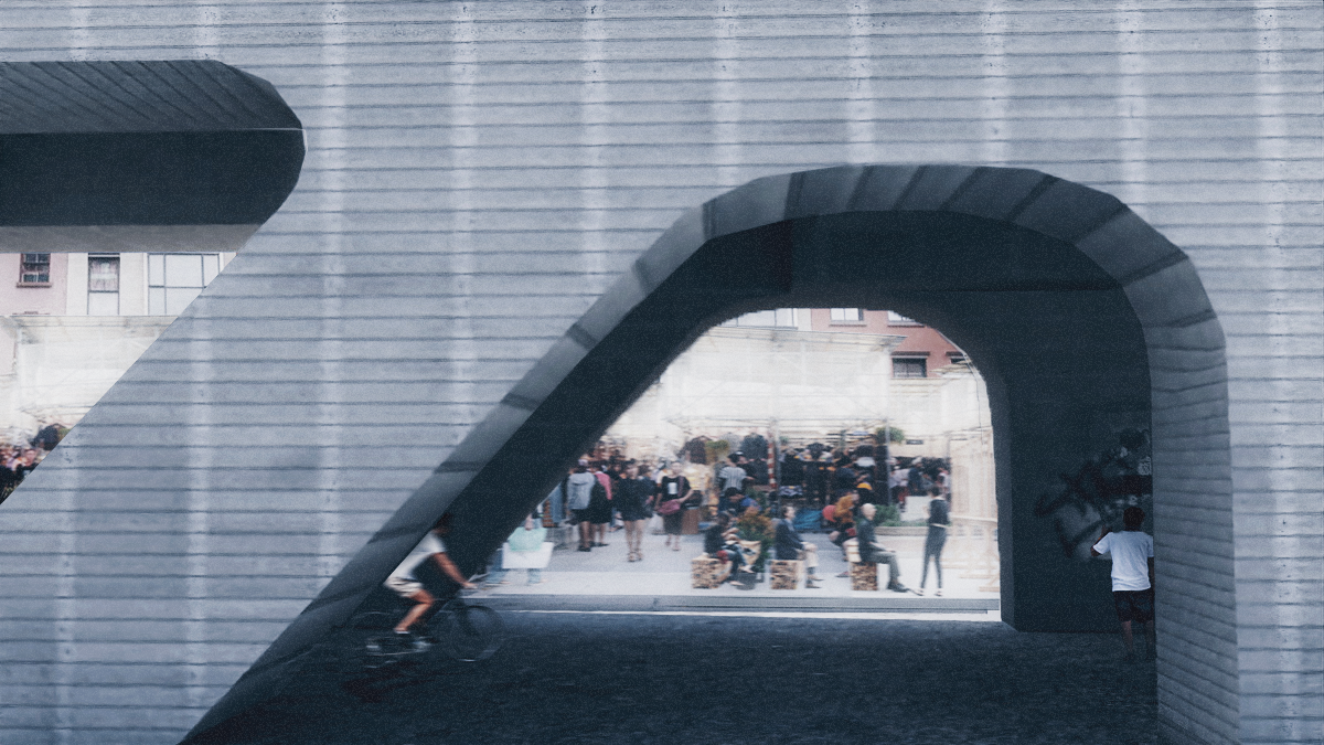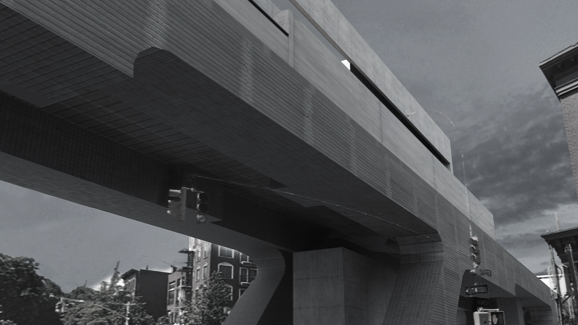 Referencing the writings of writer William Burroughs, an urban proposal was made for a strip of emptiness [breath of air] in an urban grid that prioritizes automobile transportation over public space. By taking a line of the urban grid and giving it back to the people, it becomes public space.